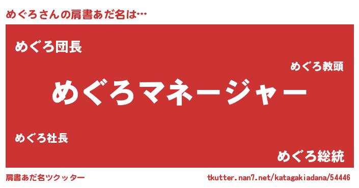 | 男性向けラノベタイトル風あだ名 | 『めぐろに滅ぼされるだけの簡単なお仕事です』 |