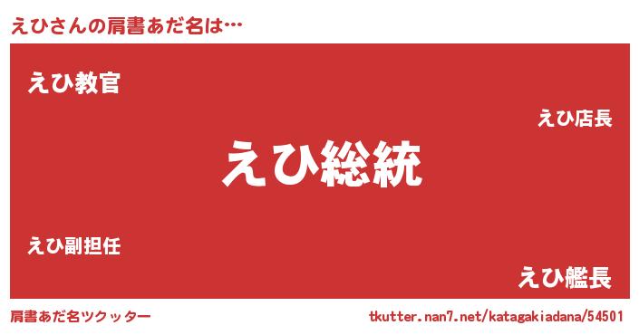 | 男性向けラノベタイトル風あだ名 | 『Re:えひから始める異世界生活』 |
