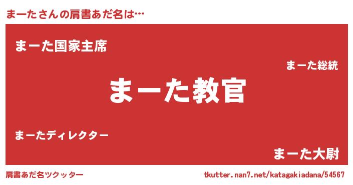 | 男性向けラノベタイトル風あだ名 | 『魔弾の王とまーた』『マータスレイヤー』 |