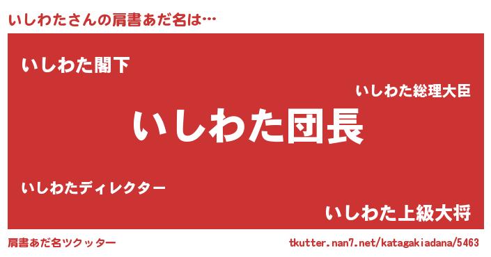 | ヒーロー風カッコイイあだ名 | 『魔戒騎士イシ』『ウルトラ戦士イシワタ』 |