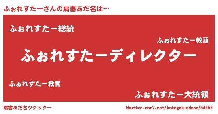 | 欧米人風あだ名 | 『アンジェラ・ふぉれすたー』 |