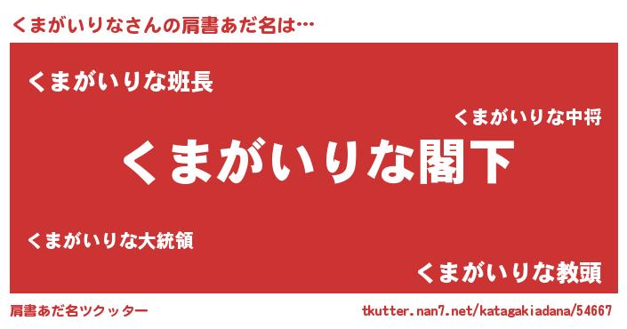 | 意味不明あだ名 | 『自称くまがいりな』 |