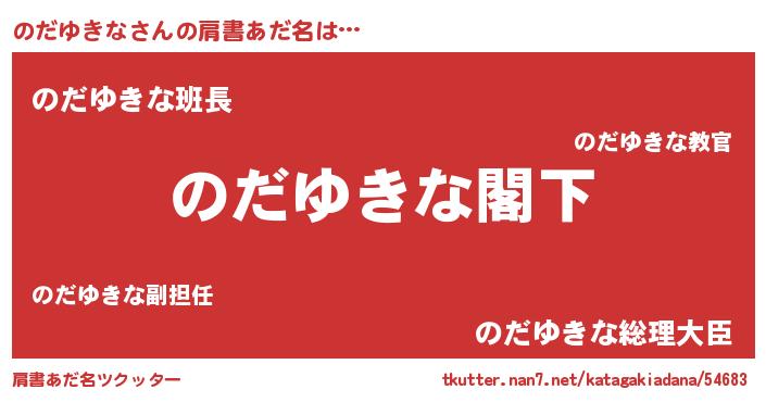 | 女子向けラノベタイトル風あだ名 | 『のだゆきなストレイドッグス』 |