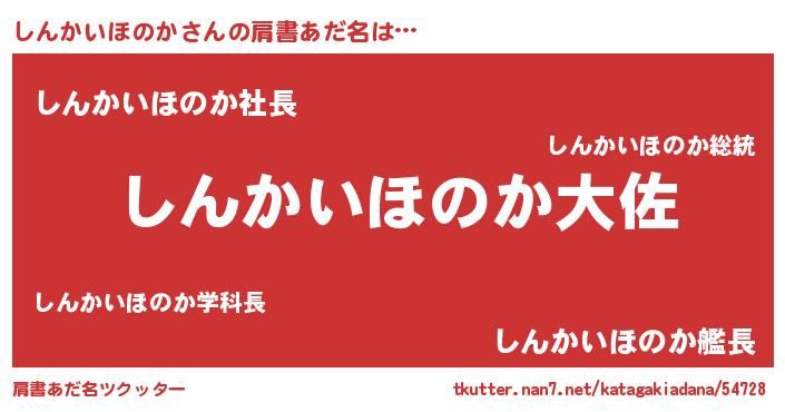 | ヒーロー風カッコイイあだ名 | 『スーパーシンカイホノカ』 |