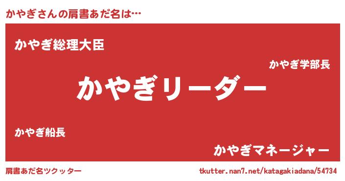 | 男性向けラノベタイトル風あだ名 | 『かやぎの嫁は女の子じゃないと思った?』 |