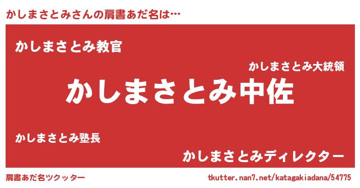 | 男性向けラノベタイトル風あだ名 | 『カシマサトミスレイヤー』 |