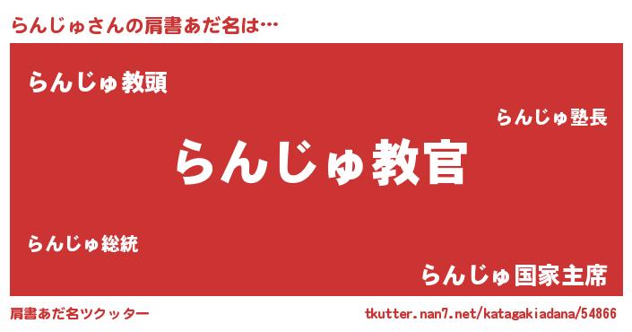 | 男性向けラノベタイトル風あだ名 | 『魔弾の王とらんじゅ』 |