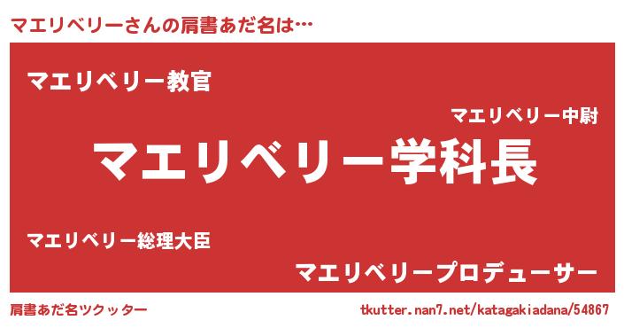 | 女子向けラノベタイトル風あだ名 | 『マエリベリー夫妻のなれそめ』 |