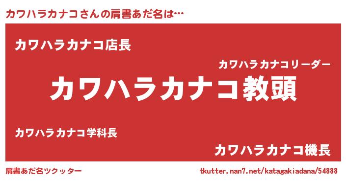 | 意味不明あだ名 | 『永久保存カワハラカナコ』 |