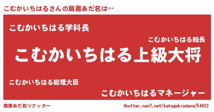 | 男性向けラノベタイトル風あだ名 | 『転生したらこむかいちはるだった件』 |