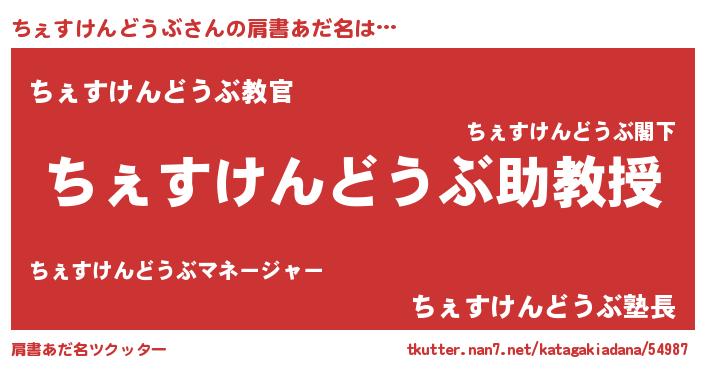| ヘコむあだ名 | 『ちぇを』『ちぇすけんどうぶ(笑)』 |