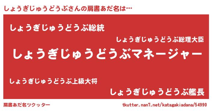 | 意味不明あだ名 | 『自称しょうぎじゅうどうぶ』 |