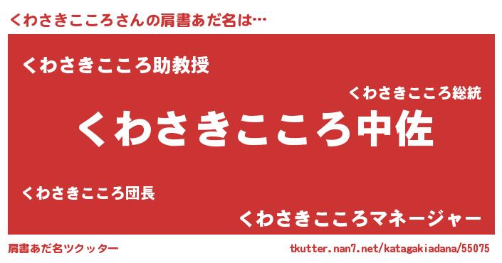 | 男性向けラノベタイトル風あだ名 | 『くわさきこころ~年齢イコール彼女いない歴の魔法使い~』 |