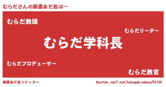 | 女子向けラノベタイトル風あだ名 | 『死神むらだの再婚』『むらだの契約王妃』 |