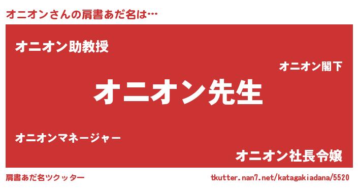 | 女子向けラノベタイトル風あだ名 | 『異世界で失敗しない100のオニオン』 |