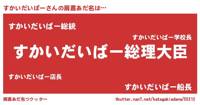 | 男性向けラノベタイトル風あだ名 | 『うちの娘の為ならば、俺はもしかしたらすかいだいばーも倒せるかもしれない。』 |