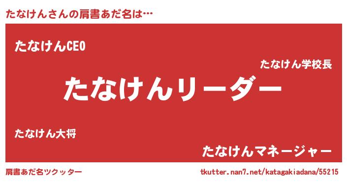 | ポケモン風あだ名 | 『ヒタナケン』『タナチュウ』 |