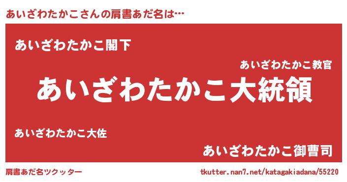 | 女子向けラノベタイトル風あだ名 | 『あいざわたかこの雑貨屋さん』 |