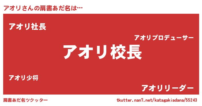 | 意味不明あだ名 | 『永久保存アオリ』『ペロリンアオリ』 |