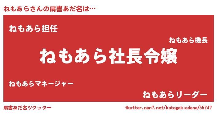 | ヘコむあだ名 | 『ねももー』『ねもあら(苦笑)』 |