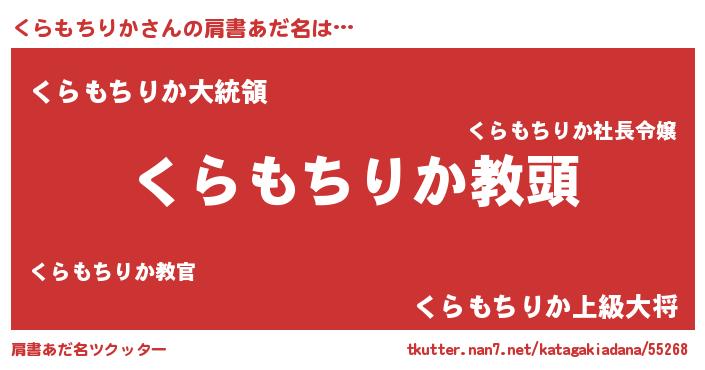 | 胡散臭い通販商品みたいなあだ名 | 『前代未聞の健康食品…その名も「くらもちりか」』 |