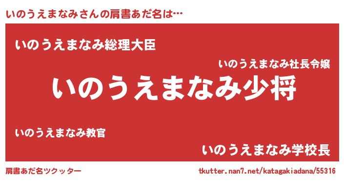 | 男性向けラノベタイトル風あだ名 | 『転生したらいのうえまなみだった件』 |