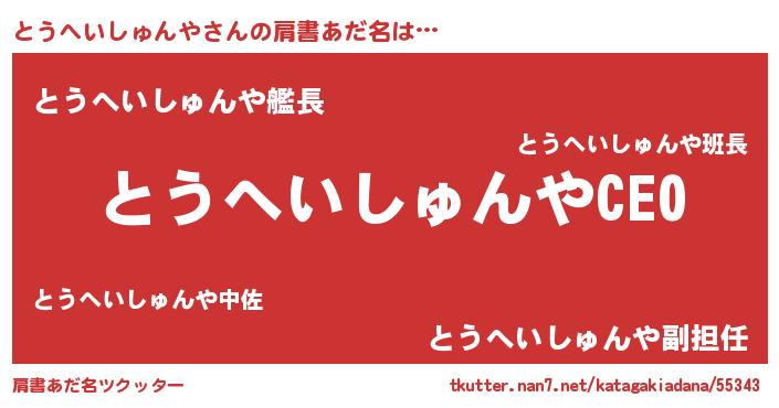 | ヘコむあだ名 | 『とうふぇ~』『とうへいしゅんや(爆)』 |