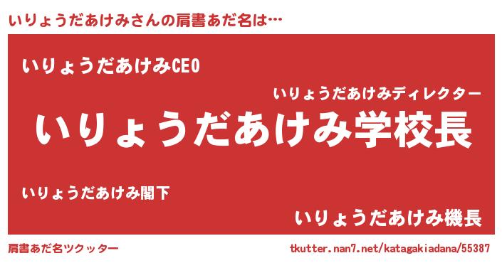 | 男性向けラノベタイトル風あだ名 | 『ノーゲーム・ノーイリョウダアケミ』 |