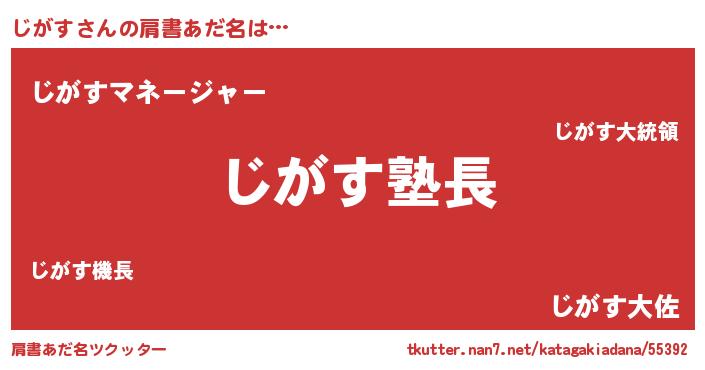 | ヘコむあだ名 | 『じがっ子』『豆乳』『じがにゅー』 |