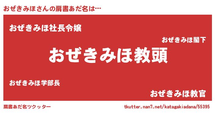 | 女子向けラノベタイトル風あだ名 | 『おぜきみほの契約王妃』 |
