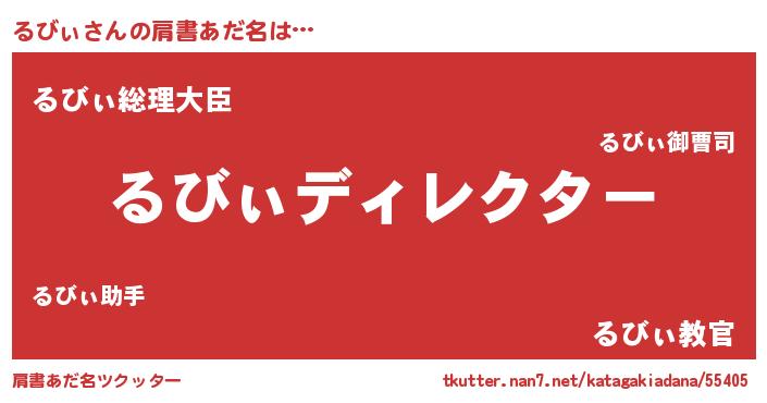 | 男性向けラノベタイトル風あだ名 | 『るびぃに滅ぼされるだけの簡単なお仕事です』 |