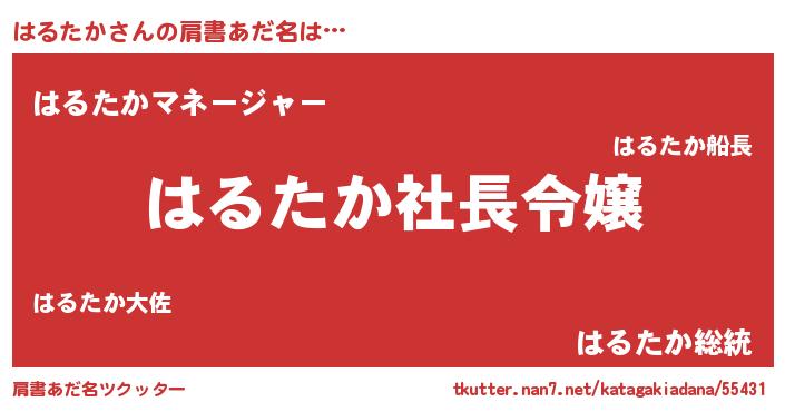 | 男性向けラノベタイトル風あだ名 | 『ハルタカアートオンライン』 |