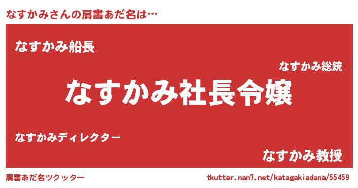 | ヒーロー風カッコイイあだ名 | 『スーパーナスカミ』『最強戦士ナスカミ』 |