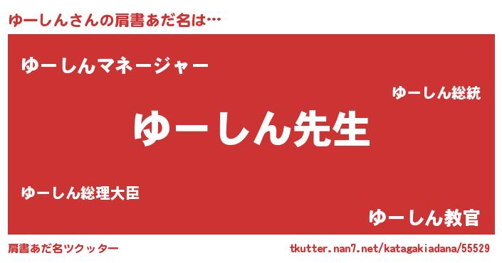 | 男性向けラノベタイトル風あだ名 | 『ゆーしんという概念が存在しない退屈な世界 』 |