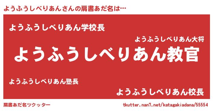 | ヘコむあだ名 | 『ようふうしべりあん(遠い目)』『ようっぺ』 |