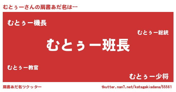 | ヘコむあだ名 | 『むと太郎』『なまこ酢』『むともー』 |