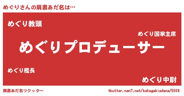 | ヒーロー風カッコイイあだ名 | 『ネオメグリ』『ウルトラめぐりマン』 |