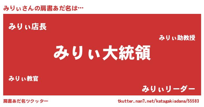 | 意味不明あだ名 | 『みりぃフォーエバー』『ペロリンみりぃ』 |