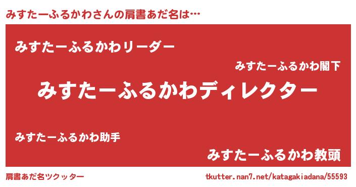 | 意味不明あだ名 | 『とにかく怪しいみすたーふるかわ』 |