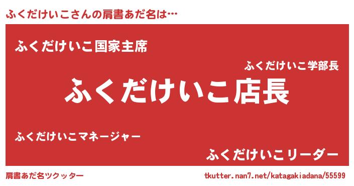 | 男性向けラノベタイトル風あだ名 | 『ふくだけいこの憂鬱』 |