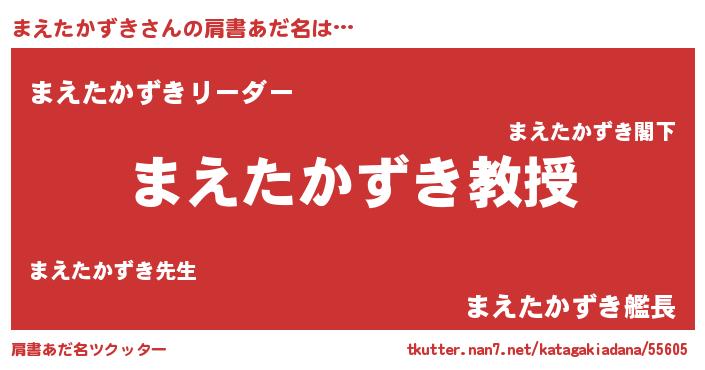 | 男性向けラノベタイトル風あだ名 | 『おまえをオタクにしてやるから、俺をまえたかずきにしてくれ! 』 |