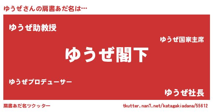 | 男性向けラノベタイトル風あだ名 | 『Re:ゆうぜから始める異世界生活』 |