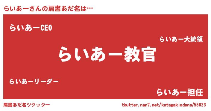 | 男性向けラノベタイトル風あだ名 | 『この素晴らしい世界にらいあーを!』 |