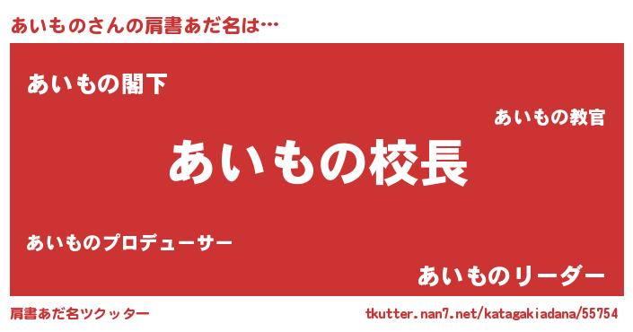 | 意味不明あだ名 | 『永久保存あいもの』『自称あいもの』 |