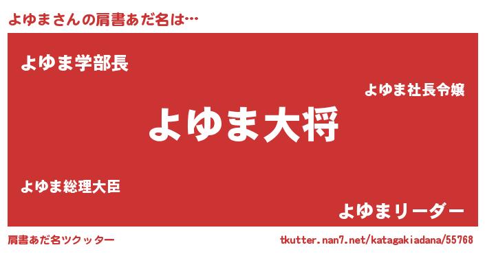 | 男性向けラノベタイトル風あだ名 | 『ヨユマスレイヤー』『よゆまの憂鬱』 |