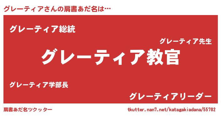 | 男性向けラノベタイトル風あだ名 | 『この素晴らしい世界にグレーティアを!』 |