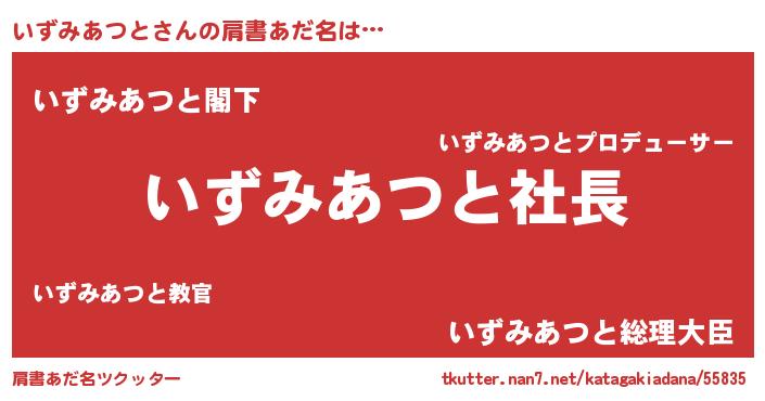| 男性向けラノベタイトル風あだ名 | 『イズミアツトアートオンライン』 |