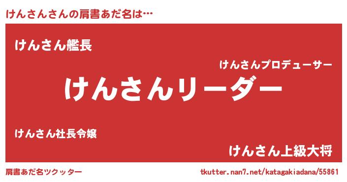 | 男性向けラノベタイトル風あだ名 | 『ダンジョンにけんさんを求めるのは間違っているだろうか』 |