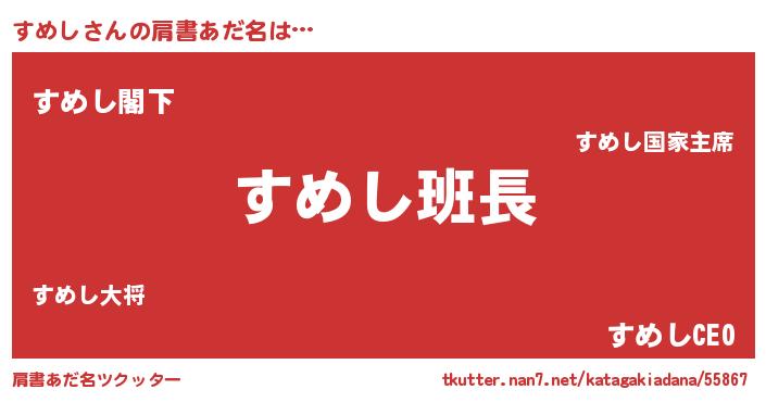 | 意味不明あだ名 | 『とにかく怪しいすめし』『自称すめし』 |