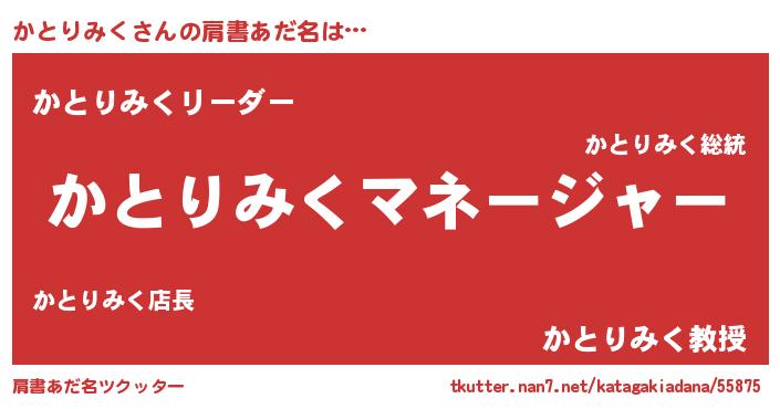 | 意味不明あだ名 | 『とにかく怪しいかとりみく』 |